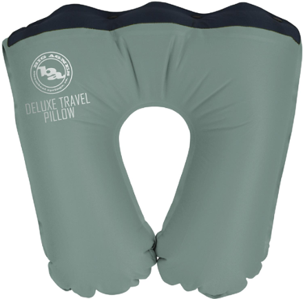 Comfortable superlight travel pillow max out on comfort with the versitility of the deluxe travel pillow designed to easily convert from a camp pillow to an airplane neck pillow compact superlight alternative to using a jacket for a pillow fits in the pillow pocket of big agnes sleeping bags stretch nylon fabric is soft and comfortable durable inflation valve i beam construction provides support and easy inflation stuff sack included.